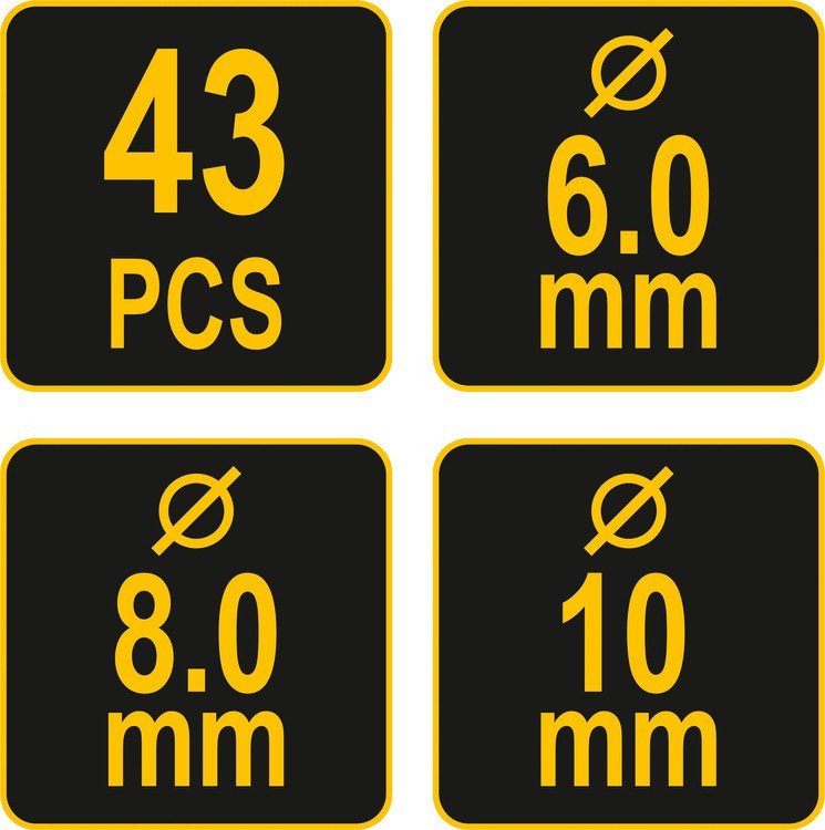 VOREL Засоби для кілкових сполучень по дереву YATO з діаметром 6, 8, 10 мм, набір 43 шт. | 24080