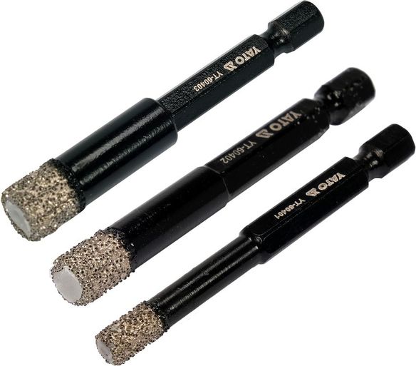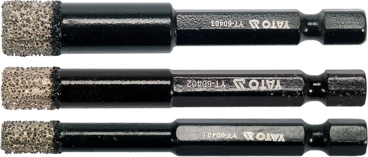 YATO Свердла з алмазним пругом, 3 шт. Ø= 6-8-10 мм, l= 65/10 мм, з 6-гран. шпинделем- 1/4"