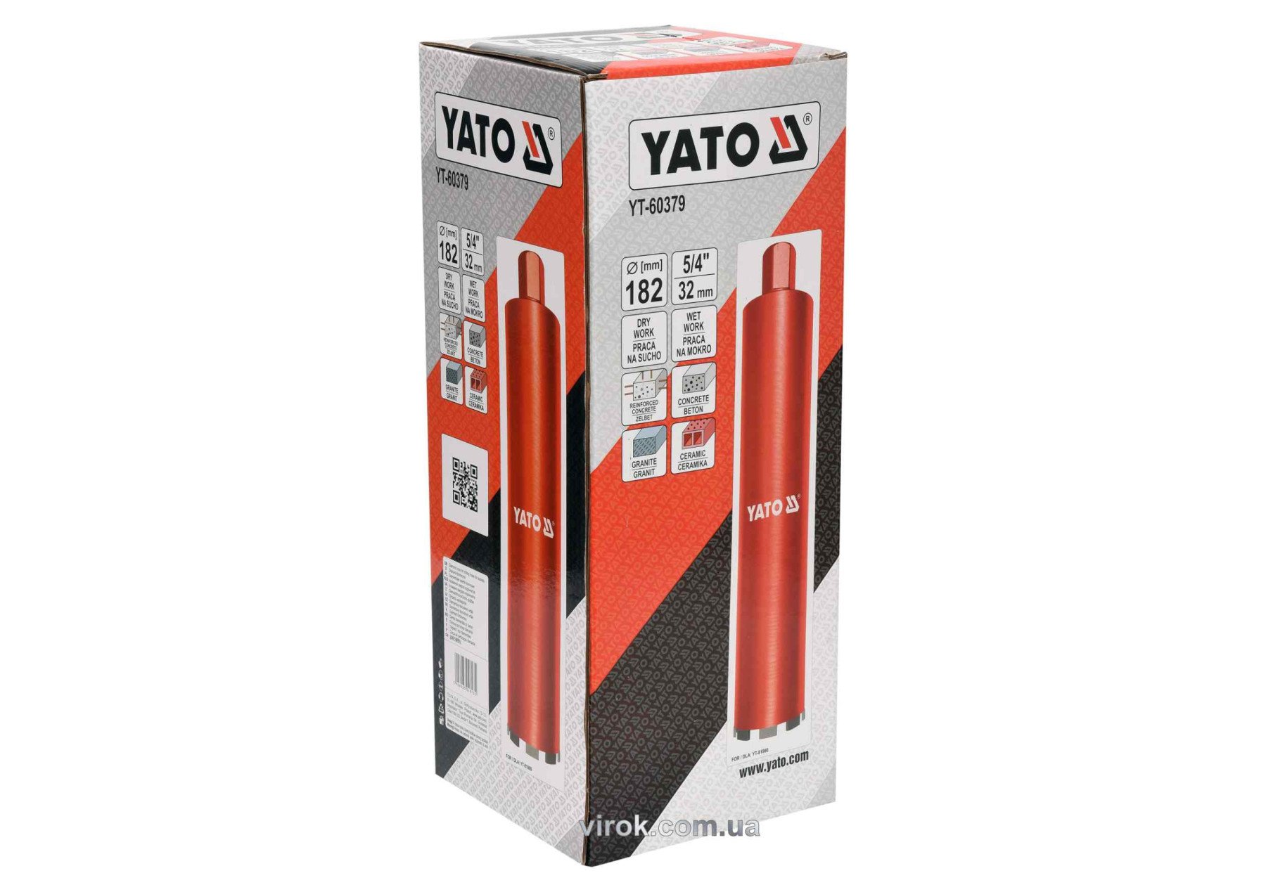 YATO Свердло корончате по каменю, бетону : Ø= 182 мм, l= 430 мм, з алмазн. пругами, хвостовик- М32
