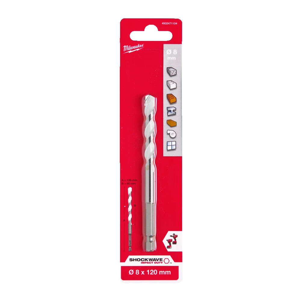 Свердло по мультиматеріалам (10x120 мм; хвостовик HEX) Milwaukee розраховане для роботи як з гвинтовертами (з ударом), так і з інструментами, оснащеними трикулачковими патронами, такі як шуруповерти