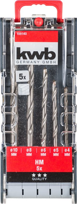 Masonry drill set, acc. to ISO 5468, tungsten carbide tipped, suitable for percussion