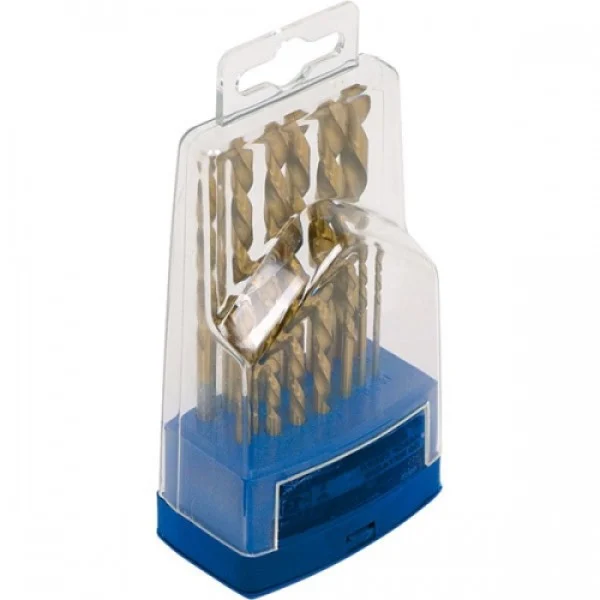 - Підходить для бронзи, латуні, вуглецевої сталі, чавуну, низьколегованої і нержавіючої сталі Додатково покриття робочої поверхні нітридом титану Комплектація свердла: 1, 1.5, 2, 2.5, 3, 3.5, 4, 4.5, 5, 5.5, 6, 6.5, 7, 7.5, 8, 8.5, 9, 9.5, 10, футляр Стандарти заточки DIN338 Хвостовик циліндрічний -