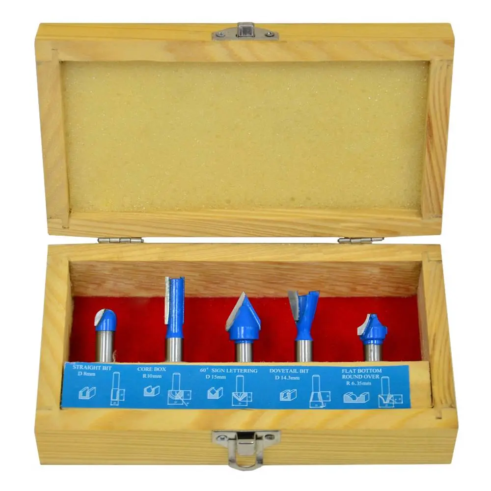 Фрезы имеют твердосплавные лезвия гарантирует качество и скорость обработки материала. Это также обеспечивает высокую прочность инструмента и увеличивает срок службы. Предназначены для обработки выборки пазов различной формы, выполнение паза и др. В наборе фрезы различного типа и размера. Фрезы по дереву является неотъемлемой частью специальных деревообрабатывающих станков. Используются как в массовом производстве, так и в локальном ремесленничестве. Все фрезы укомплектованы в специальный деревянный кейс, удобный как для хранения, так и для транспортировки. Диаметр цилиндрического хвостовика 8 мм.