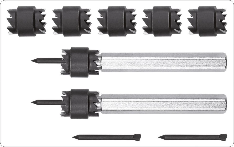 Профессиональный набор для быстрого снятия сварных швов, сварки и сварных швов кузова. Включает 6 двусторонних резаков для шнурков, два зажима и 2 стержня для деления.