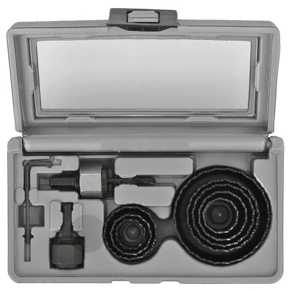 Параметры Диаметр, мм 22/25/29/35/38/44/51/68 мм - Кількість предметів в наборі / пакуванні 11 шт. Вага 0.5 кг Підходить для дрилів, шуруповертів Габаритні розміри 110х200х55 мм Комплектація коронок HCS (8 шт.), 2 перехідники (6.35 мм, 8 мм), шестигранний ключ, пластиковий кейс Оброблюваний матеріал дерево, ДСП, гіпсокартон Робоча довжина 23 мм Хвостовик циліндричний Тип різу сухий різ Материал високовуглецева сталь -