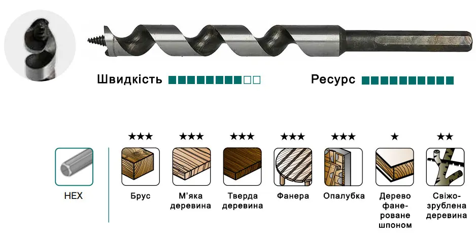 - Висока швидкість проходження завдяки дуже гострому ріжучому кінцю.