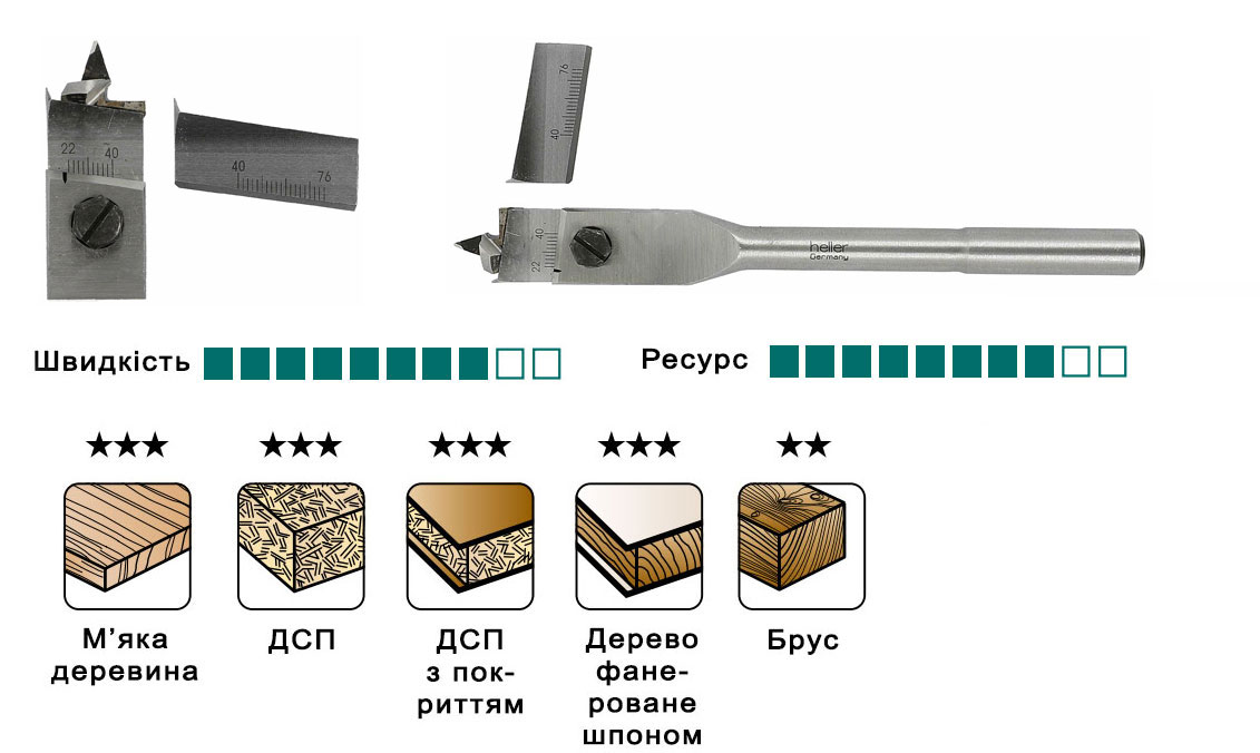 - Універсальне свердло: ідеальний інструмент для будь-якого отвору завдяки регульованим різцям. Універсальний інструмент для найпоширеніших випадків застосування.