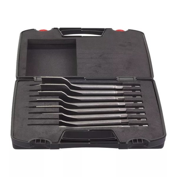 Набір свердловин (8 шт) Особливості Швидке свердління великих діаметрів Для роботи з природною твердою та м'якою деревиною та ДСП Ідеальні при встановленні дверних замків, виготовлення пазів, а також електричних та сантехнічних робіт. 1/4" шестигранний хвостовик (DIN E 6.3) для безпосередньої установки в шпиндель інструменту або для надійного закріплення в патроні Центруючі вістря для точного засвердлювання, гострі допоміжні кромки для покращення якості різання Комплектація Свердла 152 мм: 12/16/18/20/22/25/28/32 мм Дерев'яний кейс