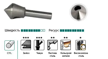 Зенкер HELLER з поперечним отвором 10-15x21х65 мм. Матеріал: HSS
