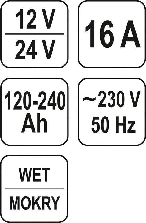 Профессиональное устройство YATO YT-8304 для зарядки кислотно-жидкостных аккумуляторов напряжением 12 В / 24 В и емкостью от 120 Ач до 240 Ач. Выпрямитель с регулировкой зарядного тока и функцией поддержки зарядки BOOST. Он имеет высокопроизводительный трансформатор, предохранители от перезаряда и перенапряжения и 2 режима зарядки: быстрый и медленный. Предназначен для легковых автомобилей, фургонов и грузовиков.