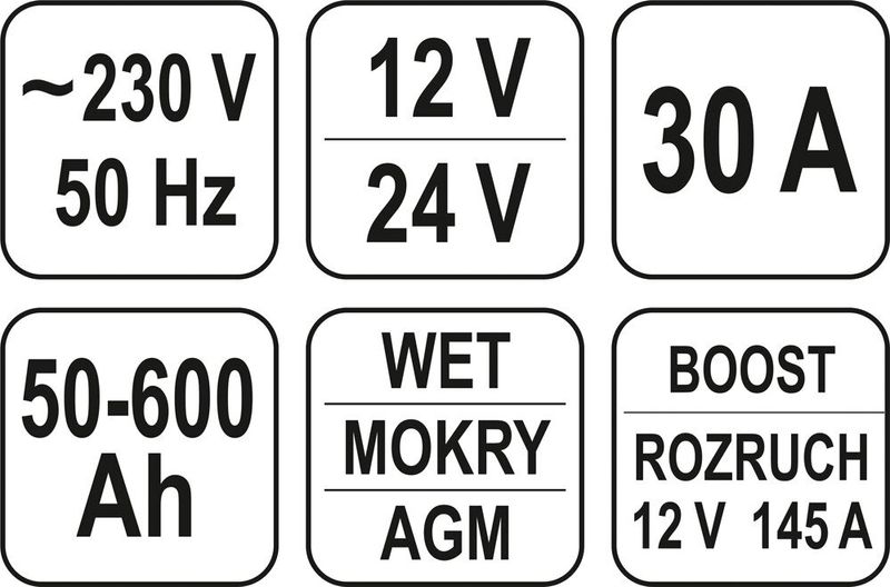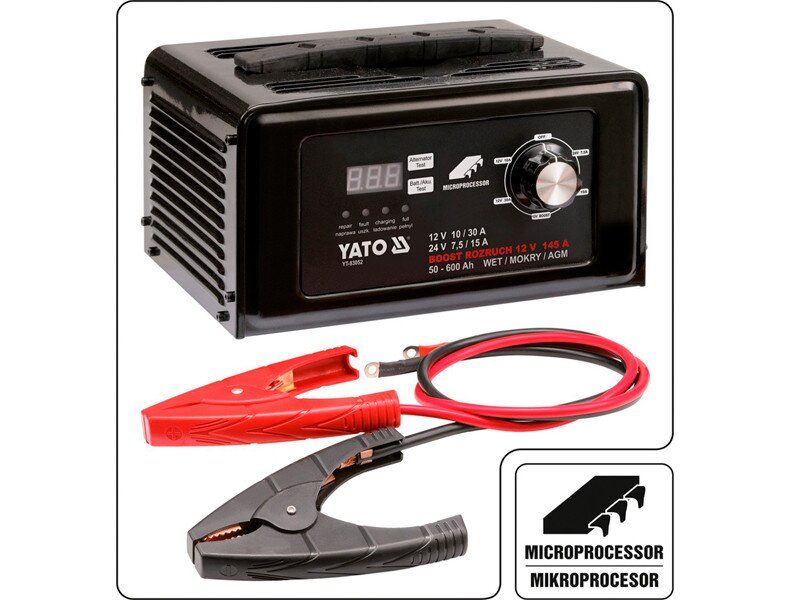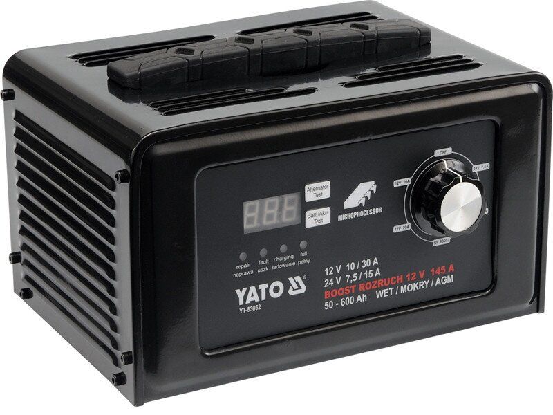 Пуско-зарядний пристрій YATO до акумул-в 12\24В, ємн. 50-600 Агод;V= 230 В,10/30А(12В),7,5/15 А(24В)