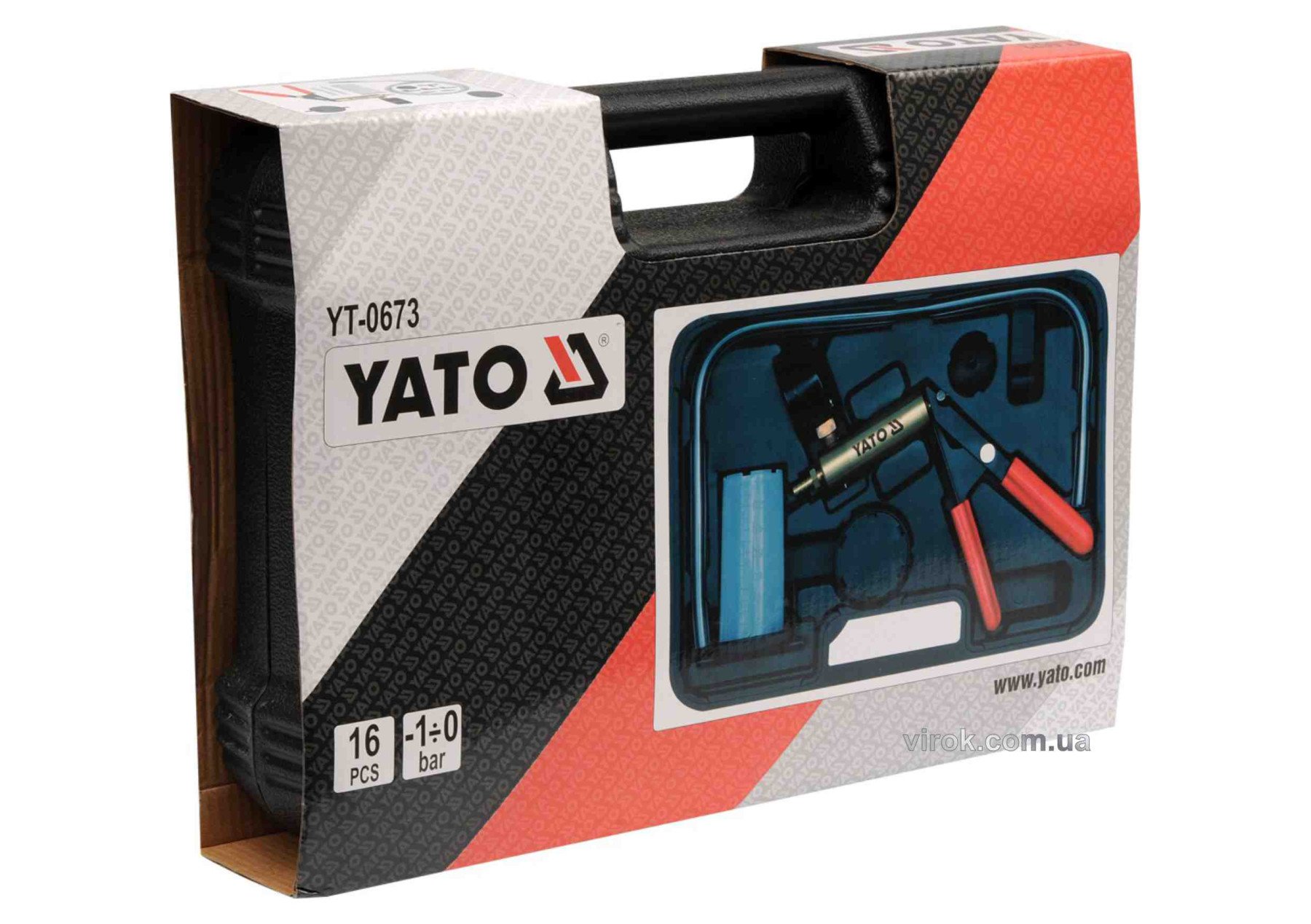Помпа ручна вакуумна YATO з обладунками, кпл. 16 шт., P= -1-0 Bar [10]