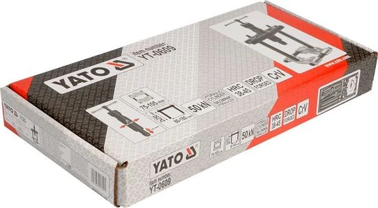 Съёмник гидравлический с сепаратором YATO YT-0609 позволяет быстро и легко справиться с демонтажом высоконагруженных деталей. Снятие подшипника осуществляется с помощью Н-образной балки и болтов. Благодаря гидравлическому приводу модель обеспечивает значительное усилие во время выполнения операций. Захваты данного инструмента выполнены из прочной и качественной легированной углеродистой стали, закаленной до твердости HRC 42-45.