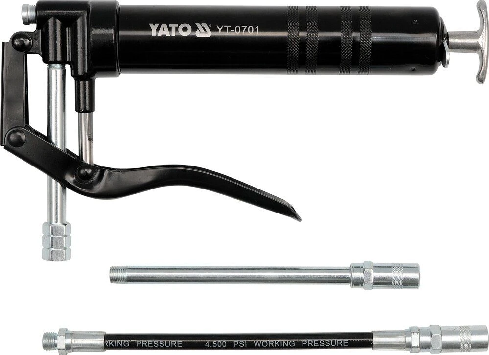 Шприц для масляной смазки YATO YT-0701 отличный в работе с повышенными нагрузками. Профессиональный инструмент, который изготовлен из высококачественного алюминия.