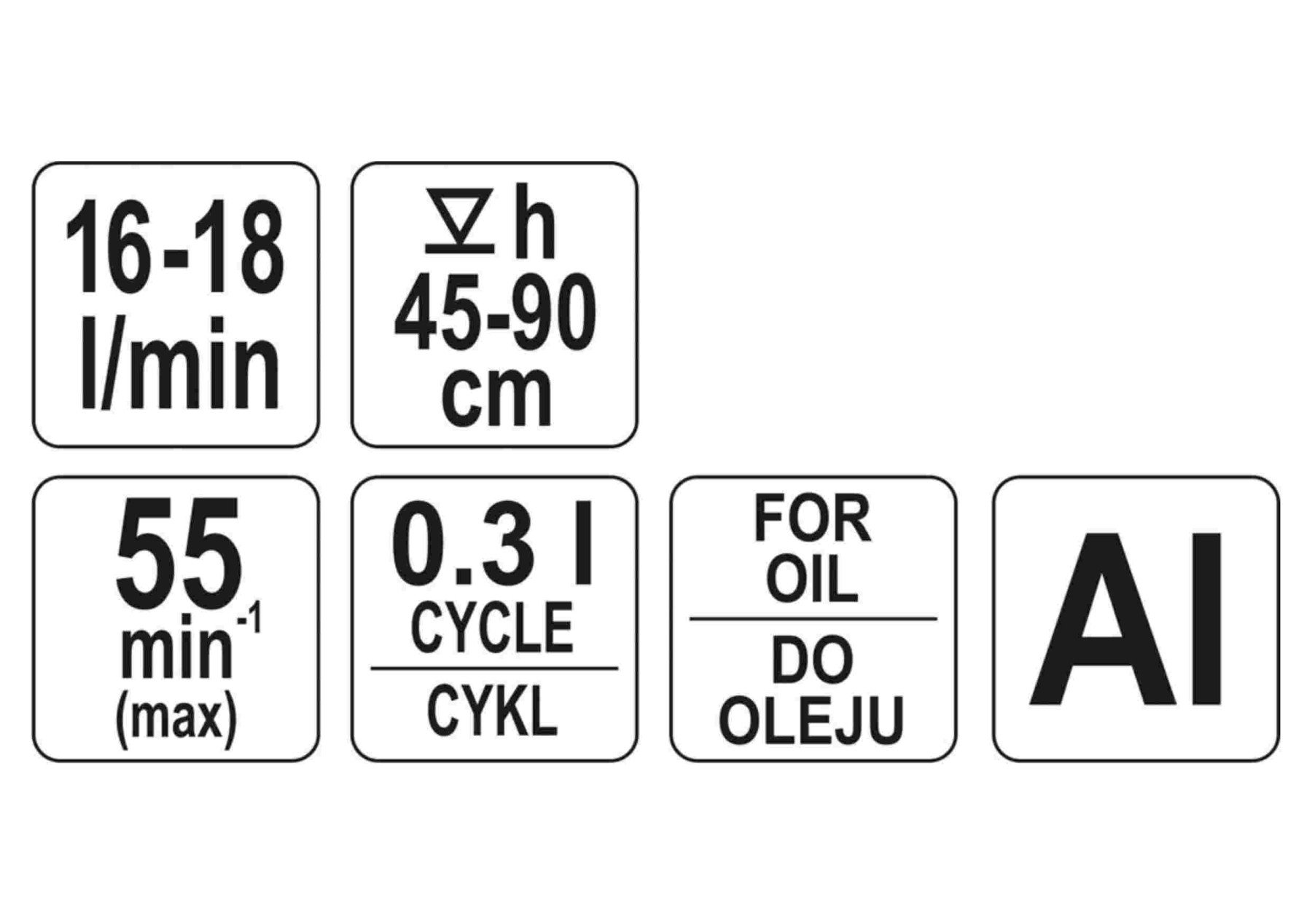 - Один цикл (рух важеля) складає 0.3 л