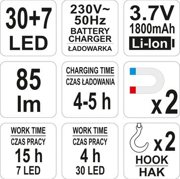 Світильник переносний, світлодіодний YATO 30/7 LED акумулят. 3,6 V з зарядкою від 220 V [10]