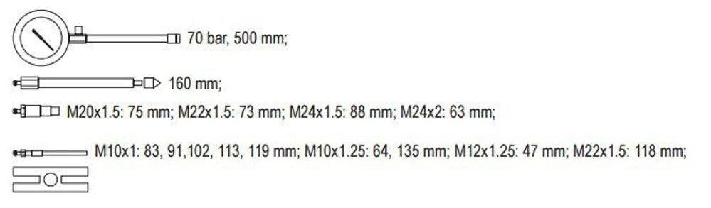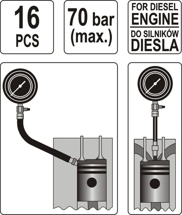 Компресометр YATO для дизельн. двигунів зі спорядж-м., P = 70 Bar [5]