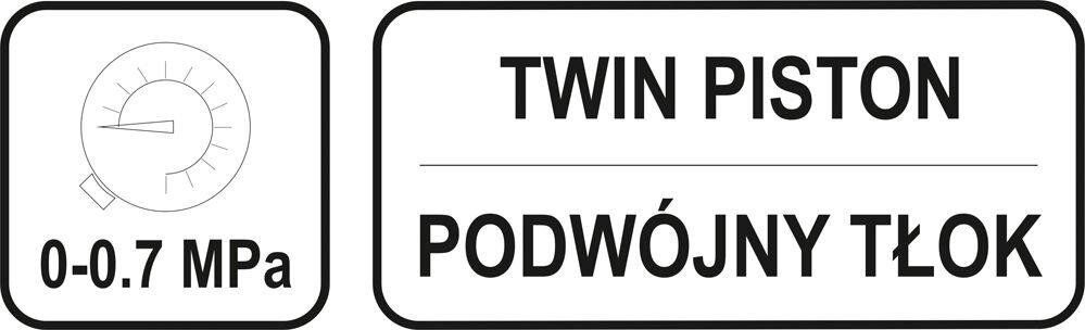 Двопоршневий ножний насос з міцною конструкцією, виготовлений із пресованого сталевого листа, покритого лаком, товщиною 3 мм.