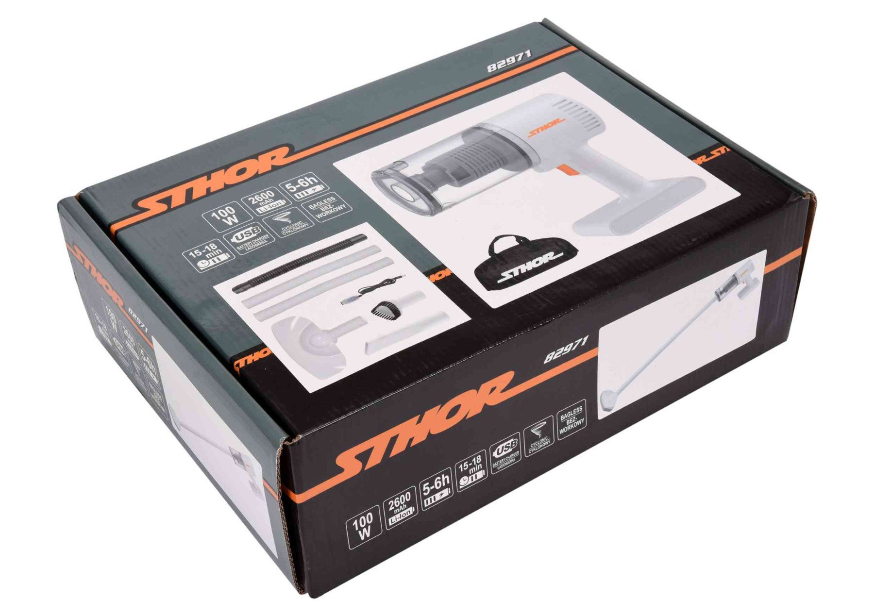 STHOR Порохотяг автомобільний акумул. : Li-Ion 11 В 2.6 Агод, 100 Вт, фільтр HEPA +насадки +сумка | 82971
