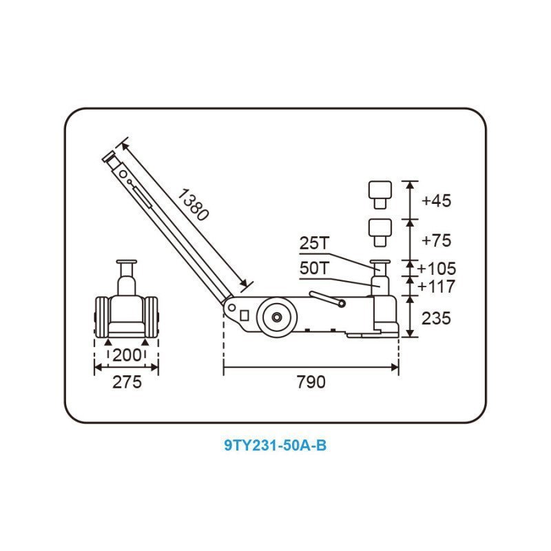 KING TONY Домкрат пневмогідравлічний підкатний вантажопідйомність 50/25 т | 9TY231-50A-B
