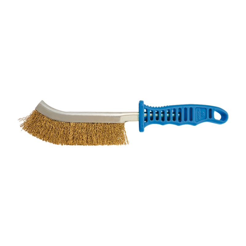 Комплект постачання – 20 щіток. Інструмент має сталеву основу та масивну пластикову рукоятку. Підходить для шульги та правші, є кільце для вивішування інструменту на панелі інструментів. Щетина сталева, із захисним латунним покриттям. Якість виготовлення висока. Інструмент розрахований на жорсткі умови експлуатації – лозини не випадають із щетини при інтенсивній роботі.