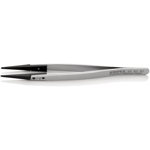 Пінцет із змінними наконечниками ESD Для виконання прецизійних робіт з підвищеними вимогами: міцність та висока стійкість до дії корозії Максимальний захист поверхні при роботі з чутливими електронними компонентами, мікромеханічними деталями, скляними та керамічними компонентами. Ручна обробка корпусу: зашліфовані кромки і чудова гладка матова поверхня, що не відображає. Високоякісна нержавіюча сталь корпусу преміум-класу: забезпечує високу термостійкість та відмінну стійкість до впливу корозії щодо більшості хімікатів, солей та кислот. Змінні наконечники на 30% виготовлені із пластику, армованого вуглецевим волокном; вони мають високу електропровідність і теплопровідність і відрізняються високою стійкістю до стирання і подряпин Змінні пластикові наконечники, армовані вуглецевим волокном, з поверхневим опором у діапазоні 10^2 – 10^3 Ом для контрольованої компенсації різниці потенціалів між оператором та електронними компонентами Змінні наконечники постійно стійкі до дії температури до 130°C, короткочасне використання можливе за температури до 190°C. Наконечники з пластику, армованого вуглецевим волокном, є надзвичайно гнучкими, стійкими до втоми, знижують вібрацію і мають водовідштовхувальні характеристики. Наконечники мають хорошу хімічну стійкість до більшості масел, мастил, палив і неполярних розчинників. Така ж точність і стабільність, що й у звичайних пінцетів: пластикові наконечники мають 3-точкове з'єднання з нульовим люфтом (2 точки кріплення на важелях, один гвинт), що гарантує користувачеві ідеальне кріплення до корпусу без люфту Потенційна економія: асортимент наконечників включає найрізноманітніші форми. Залежно від сфери застосування, пізніше виникне необхідність придбати тільки наконечники нержавіюча сталь преміальної якості Номер артикулу 92 81 01 EAN 4003773087090 Матеріал нержавіюча сталь преміальної якості гладкі захватні губки Маса 17 g Розміри 130 x 10 x 17 mm Reach ні RohS ні 0,4 мм Ширина наконечників (B) 2 мм так Випробовано на відповідність нормам VDE ні Галузі Промисловість Електроніка