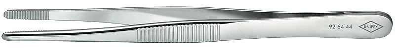 Пінцет захоплюючий прецизійний KNIPEX 92 64 44 універсальне застосування пряма форма притуплені широкі губки захоплююча поверхня рифлена Модель 92 44 42 : ювелірний пінцет губки заокруглені шириною 2,0 мм захоплюючі губки з дрібною хрестоподібною насічкою нікелювання Модель 92 64 43 : губки заокруглені шириною 3,0 мм захоплююча поверхня зазубрена нікелювання Модель 92 64 44 : губки заокруглені шириною 3,5 мм захоплююча поверхня зазубрена нікелювання Модель 92 70 46 : губки заокруглені шириною 3,5 мм захоплююча поверхня зазубрена матове лакування чорного кольору Модель 92 72 45 : губки заокруглені шириною 3,5 мм захоплюючі площини із зубцями матова поверхня пружинна сталь нержавіюча, немагнітна