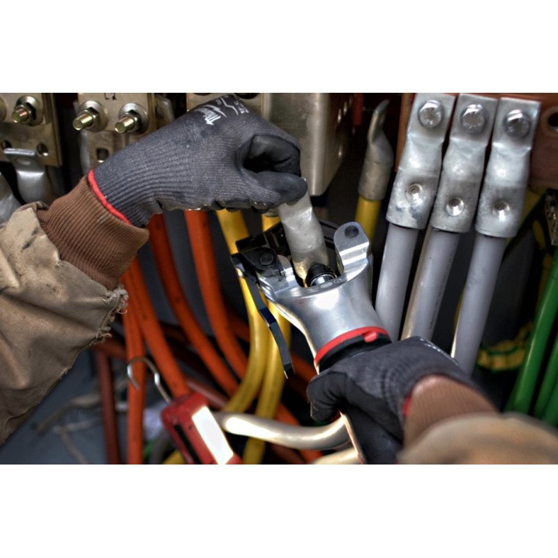 обжим (мм²) 10 – 300; 2 x M18 B2 Акумуляторні набори, M12-18 C Зарядний пристрій, Кейс ОСОБЛИВОСТІ M18™ FORCE LOGIC™ HDCT стискає клеми на гнучкому кабелі від 10 до 300 мм² без необхідності замінювати матриці Автоматичний контроль діаметра постійно замірює дистанцію до кабелю та тиск, що дозволяє отримати однаковий обжим для різних діаметрів кабелю. Голова, що обертається на 180°, і затвор з легким доступом спрощують вирівнювання і звільняють другу руку для дотримування матеріалу PFM™ (інтелектуальний контроль зусилля) з автозавершенням забезпечує повний тиск та сигналізує про закінчення операції за допомогою зеленого світлодіода. Інструмент записує та зберігає кожен зроблений обтиск для побудови звіту через ONE-KEY™ програму та ONE-KEY™ адаптер Попередня перевірка акумулятора автоматично забезпечує достатній заряд для завершення кожного обтиску. Робить до 90 обтисків на одному заряді акумулятора M18™ REDLITHIUM™ 2.0 Ач Електроніка ізольована для роботи в умовах бруду, пилу та вологи Універсальна акумуляторна система: працює з усіма акумуляторами MILWAUKEE ® M18™ Суббренд FORCE LOGIC Тип живлення акумулятор Вага (кг) 4.5 Діапазон обтиску (мм²) 10 – 300 Місткість акумулятора (Ач) 2.0 Кількість акумуляторів (шт) 2 Макс. розмір по металу (мм) - Макс. розмір за пластиком (мм) - Напруга (В) 18 Сила обтиску (кН) - Тип акумулятора Li-ion Цикл - Тип двигуна безщітковий Комплект поставки Акумуляторний безматричний гідравлічний безщітковий інструмент для обтиску кабелю з системою ONE-KEY Milwaukee M18 HDCT-202C FORCE LOGIC - 1 шт Акумулятор M18 B2 - 2 шт Зарядний пристрій M12-18 C - 1 шт Кейс