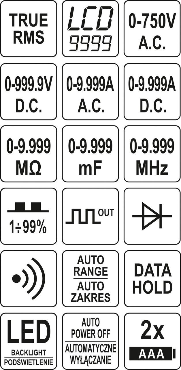 YATO Мультиметр TRUE RMS електричних параметрів з LCD-цифровим діапазоном 9999