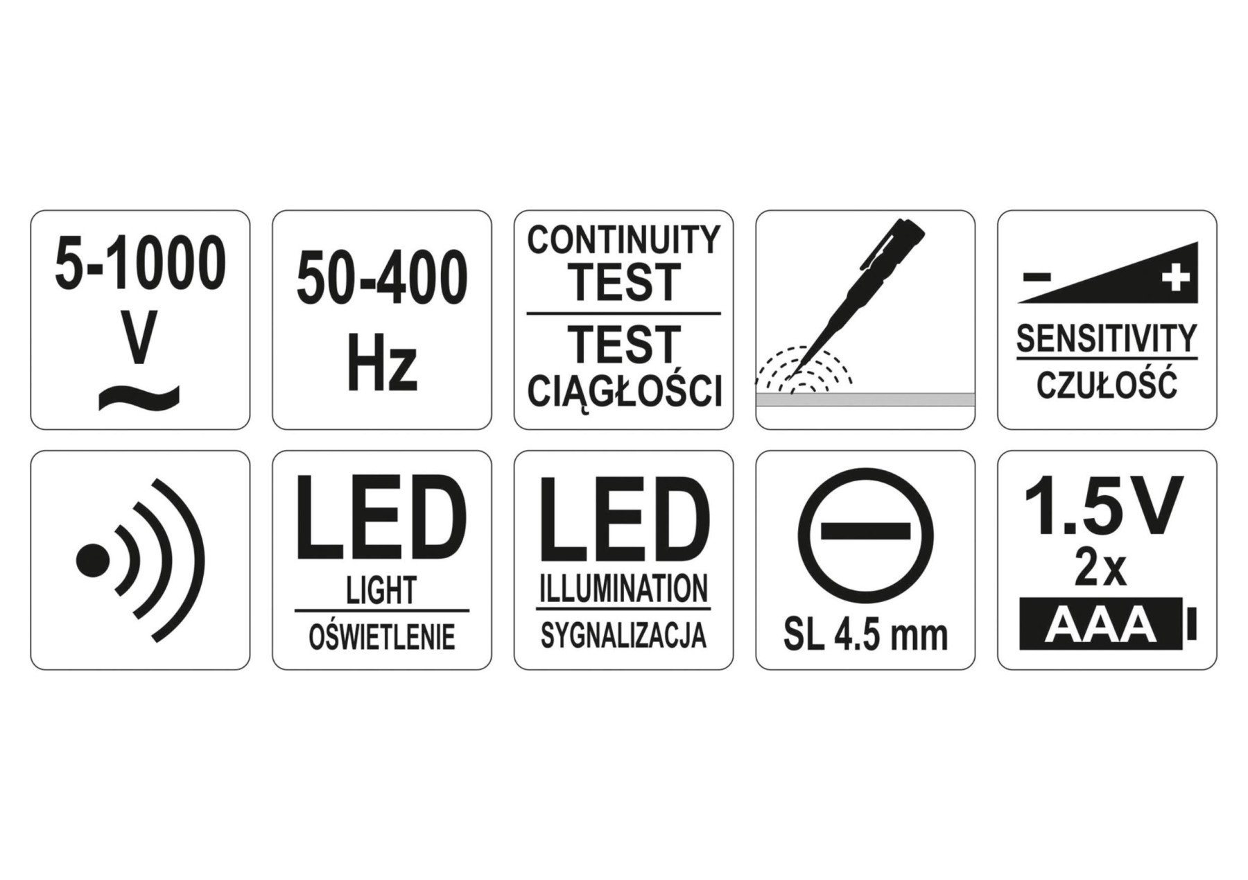 YATO Індикатор напруги мережі контрольний, 5-1000 В, плоский шліц SL4.5 мм, регулятор чутливості