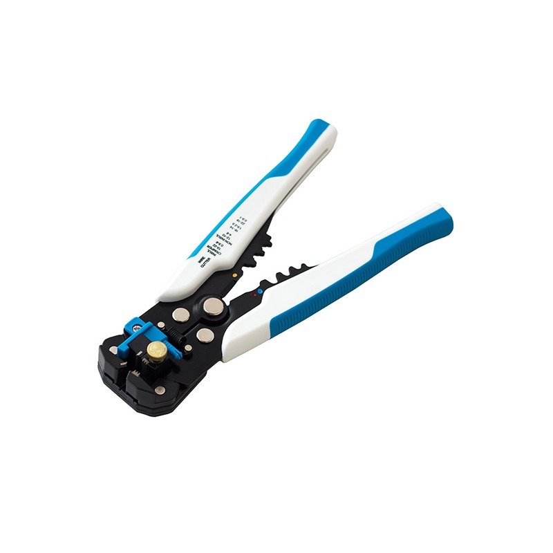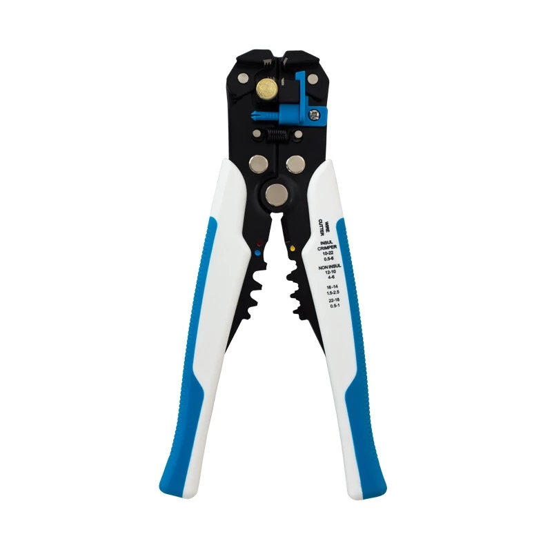 Знімач ізоляції автоматичний, універсальний. Може використовуватися для обтискання ізольованих та неізольованих клем. Укомплектований обмежувачем для однакового розміру ізоляції. Інструмент дозволяє за допомогою спеціальних профільних зубців на внутрішній поверхні ручок встановлювати кінцеві контакти на електродротах.