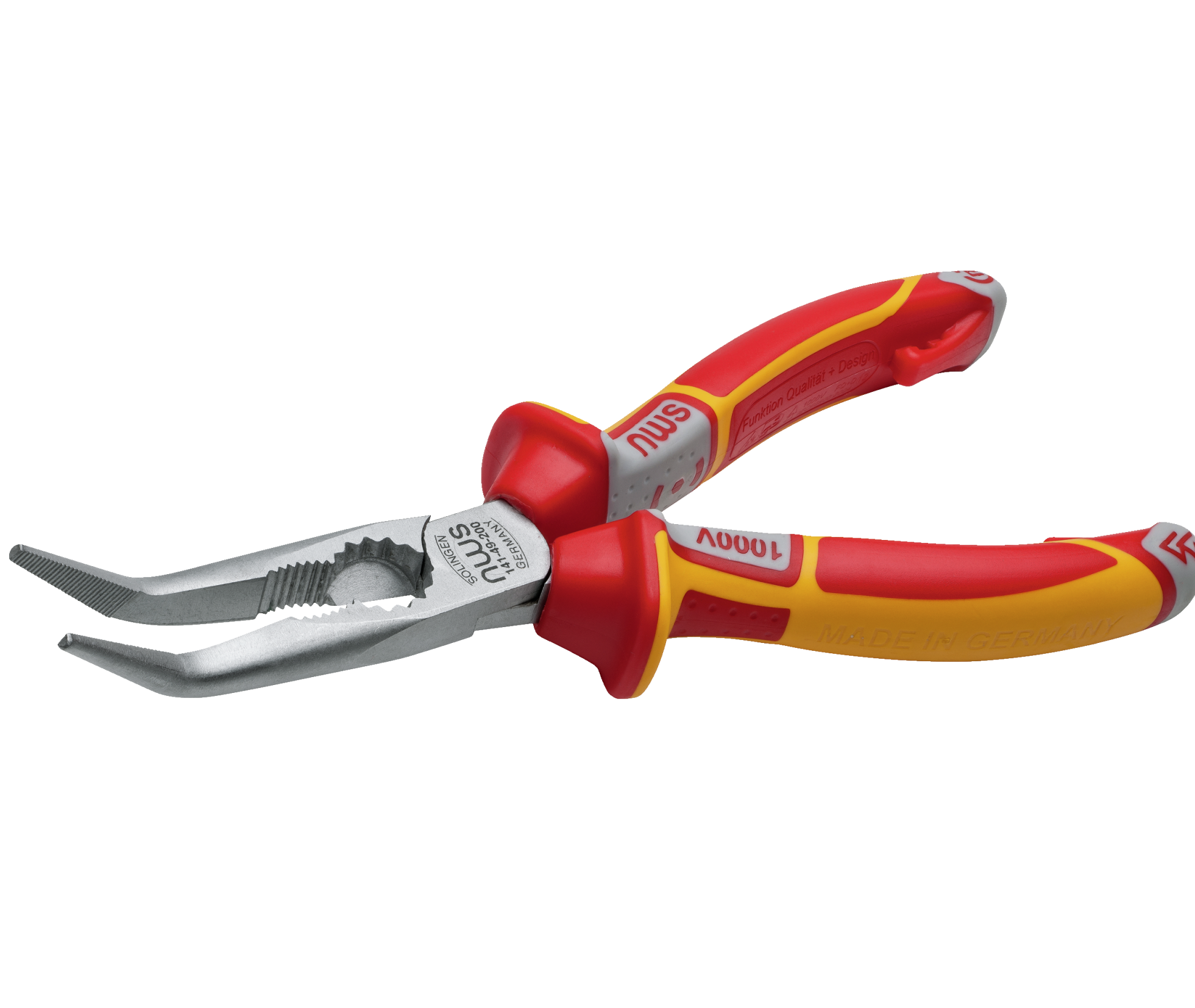 Щипці подовжені з ізольов. ручками VDE до 1000 В: вигнуті кінці 45°, L= 205 мм