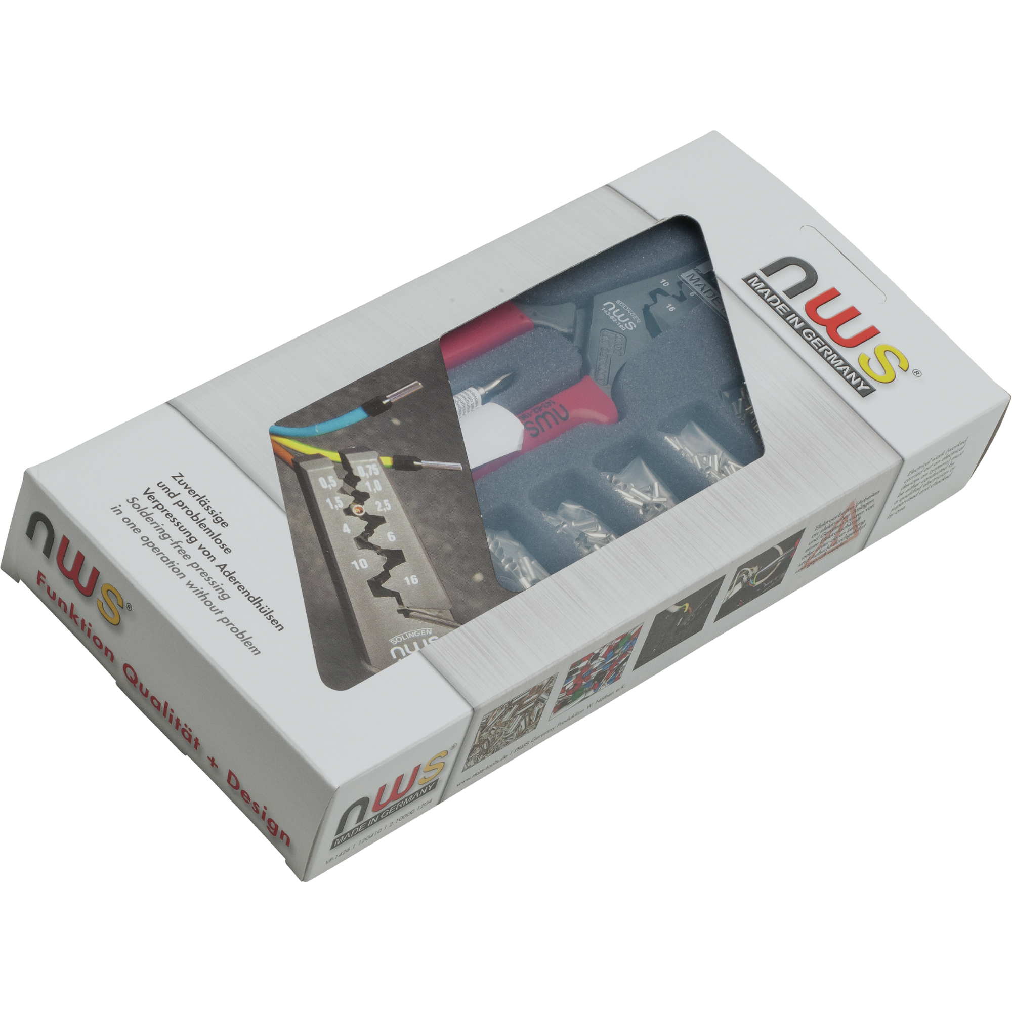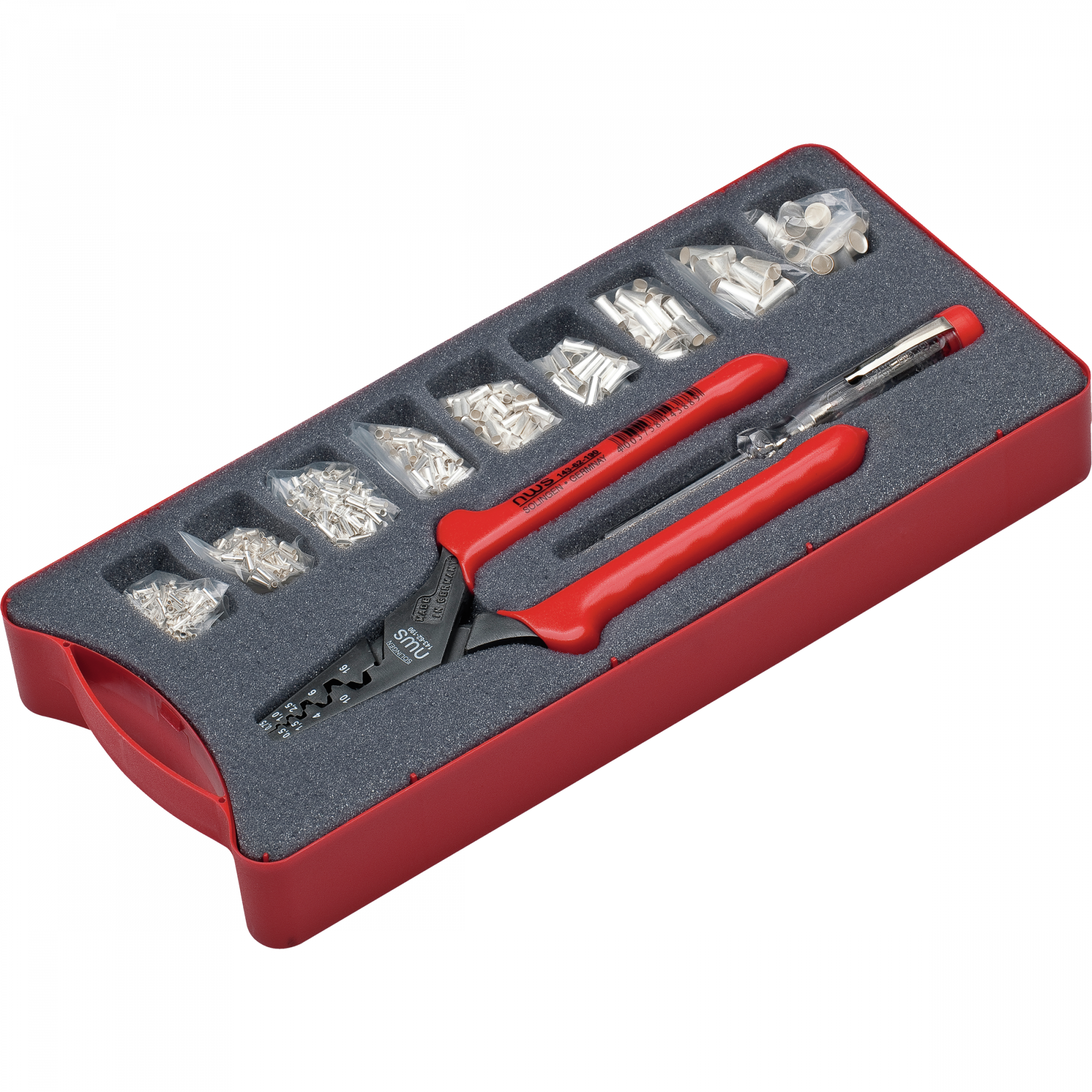 - Комплектуется клещами для опрессовки и примерно 300 неизолированными кабельными зажимами в ассортименте, от 0,5 до 16,0 мм²