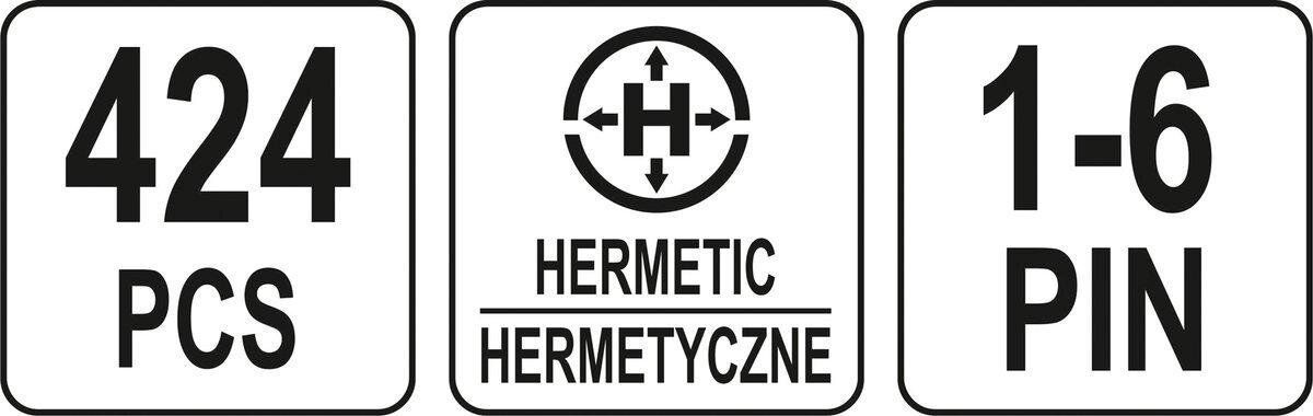 YATO Набір герметичних роз'ємів для електричних контактів, розміри 1-6 PIN, 424 шт