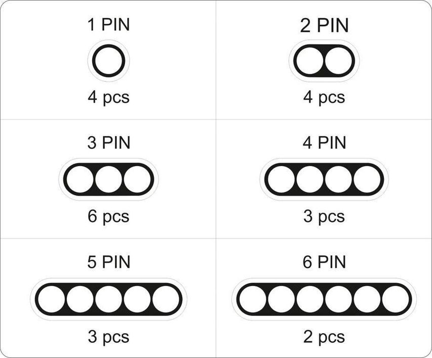 - Комплект містить 424 герметичних фітингів в 6 розмірах, які підходять для найбільш популярних діаметрів проводів