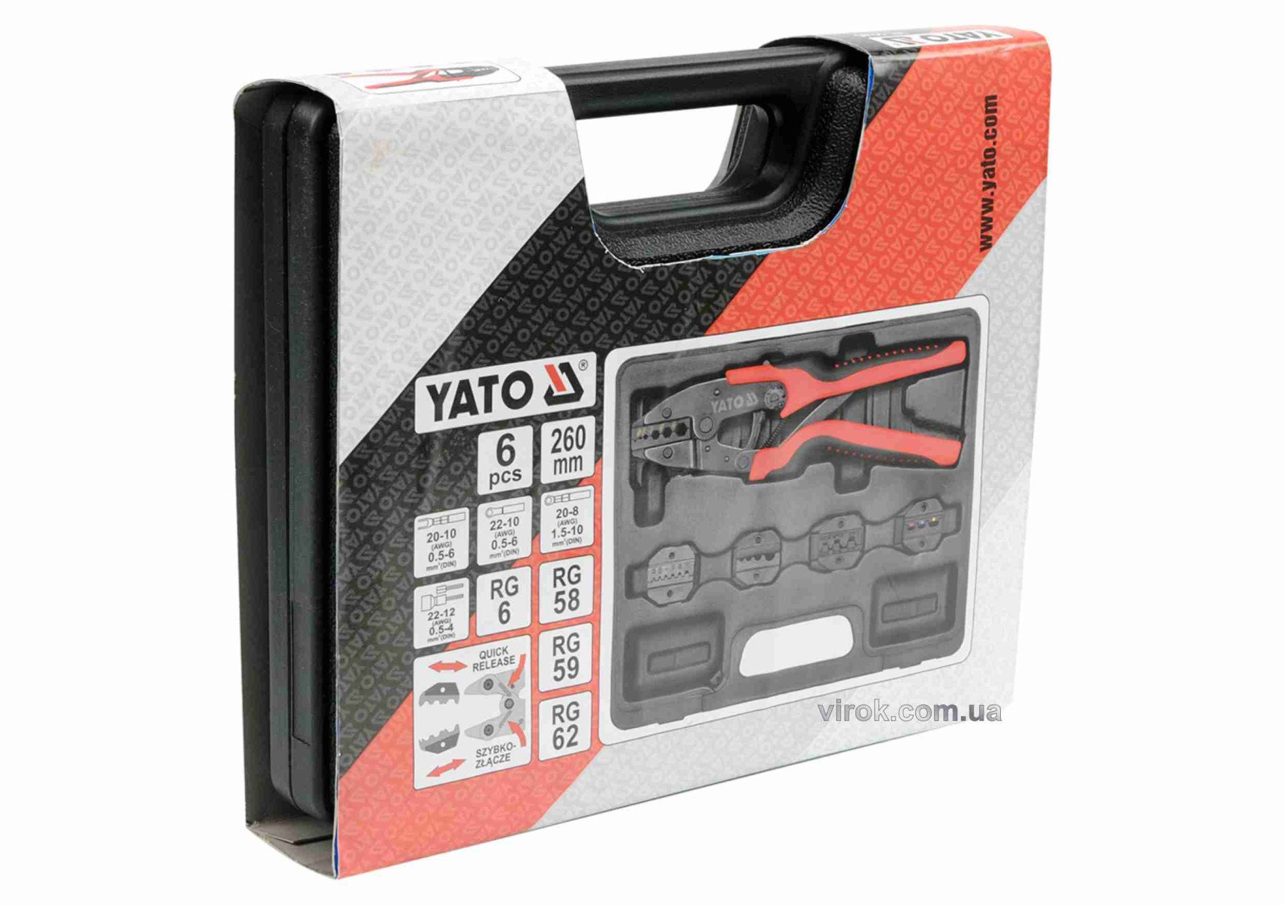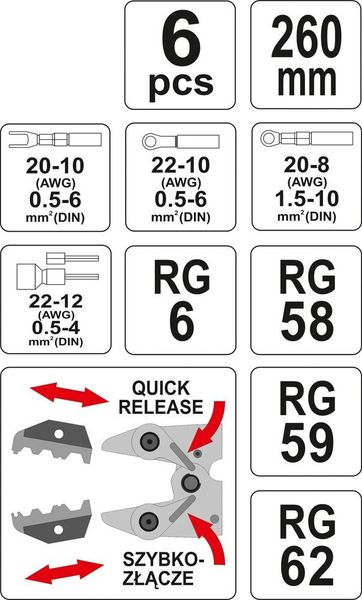 Кліщі YATO для обтискання і зачистки проводів l=260 мм в кпл. 6 шт. [10]