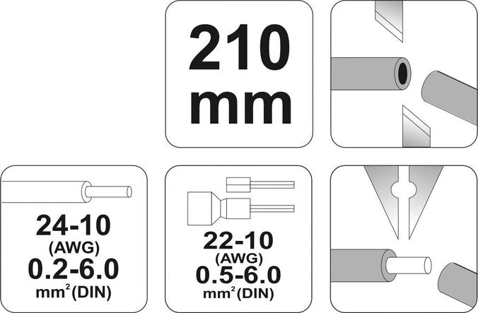 - Быстрый и автоматический механизм снятия изоляции с плоских и круглых кабелей в диапазоне от 0,2 мм2 до 6,0 мм2.
