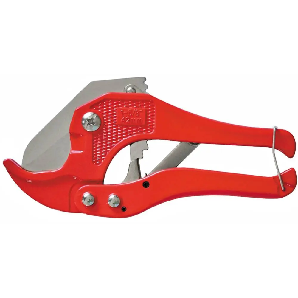 Труборез для труб ПВХ изготовлен из инструментальной стали. Имеет антикоррозийное защитное покрытие. Корпус покрашен. Режущие элементы изготовлены из прочного сплава 9CrSi. Применяется для быстрой и удобной резки труб из ПВХ, ПП и ПЭ диаметром 0 - 42 мм, без деформирования стенок.