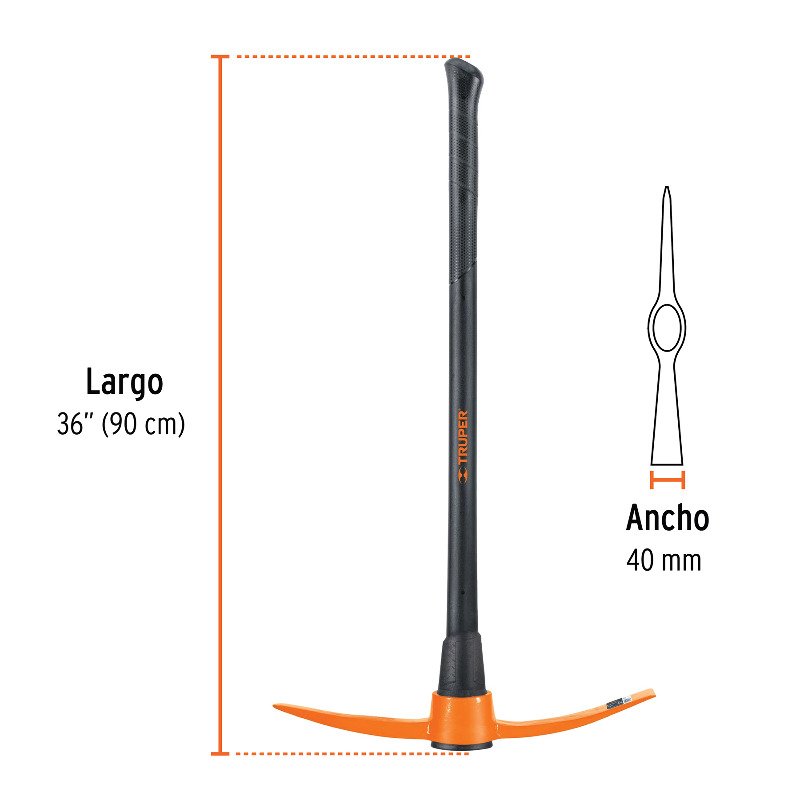 Кована голова з вуглецевої сталі. Посилена конструкція руків'я зі скловолокна зі спеціальними насічками забезпечує надійний і зручний хват.