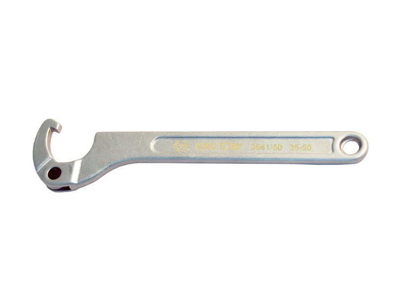 Ключ спеціальний для гайок зі шліцами d=120-180 мм Ключ радіусний шарнірний KING TONY 3641-I0 призначений для роботи з циліндричним кріпленням, що не має граней. Особливості • Хром-ванадієва сталь; • Пружний шарнір. Технічні характеристики Розмір хвата, мм 120 – 180 Довжина, мм 480 Вага, кг 1,260 Гарантія На інструмент марки KingTony поширюється довічна гарантія. З умовами гарантії можна ознайомитись у розділі Гарантія.