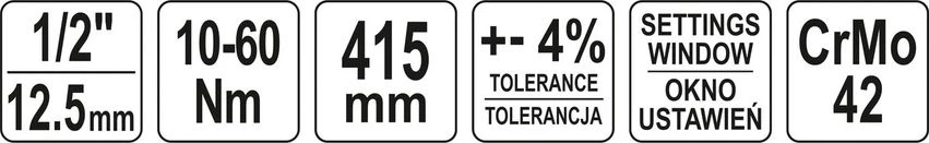 YATO Ключ динамометричний : квадрат 1/2", F= 10- 60 Нм, L= 415 мм