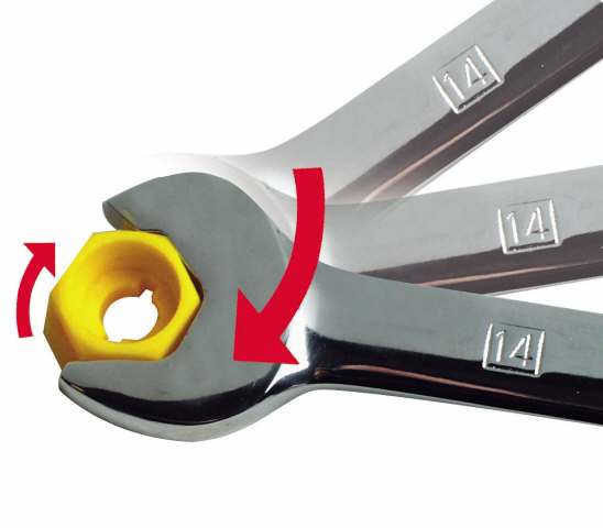- Специальная форма головки рожкового ключа Accelerator позволяет фиксировать и освобождать крепежный элемент без необходимости снимать с него ключ