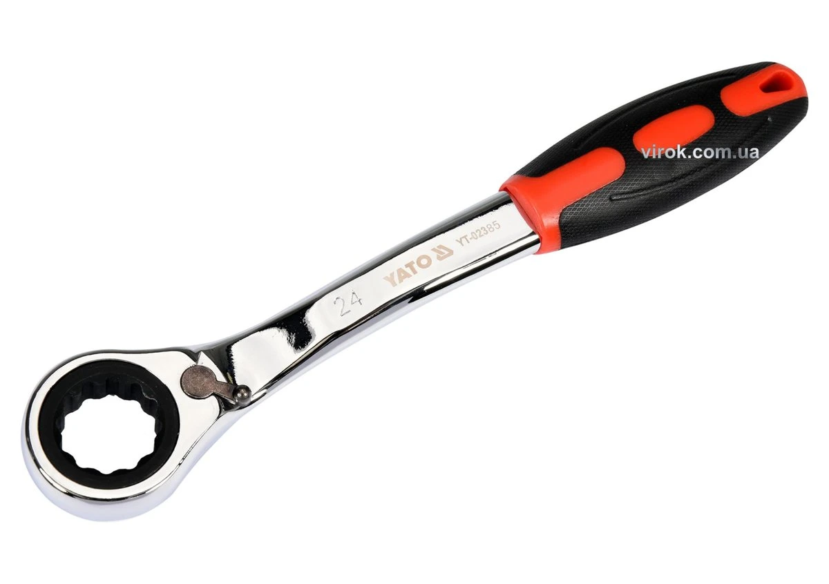 YATO Ключ накидний, вигнутий з тріщаткою: М24, HRC 42-48, Cr-V, з прогумованою ергономічною ручкою