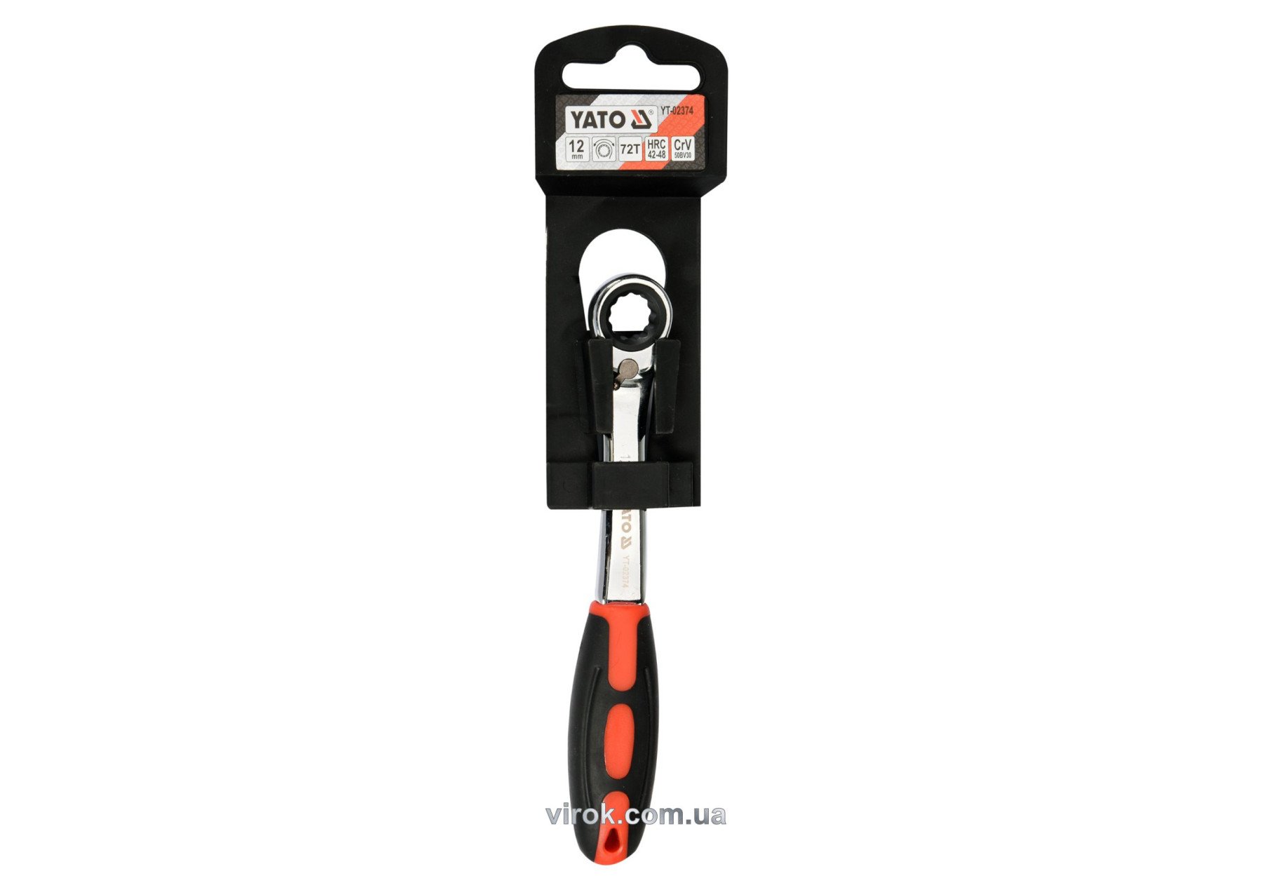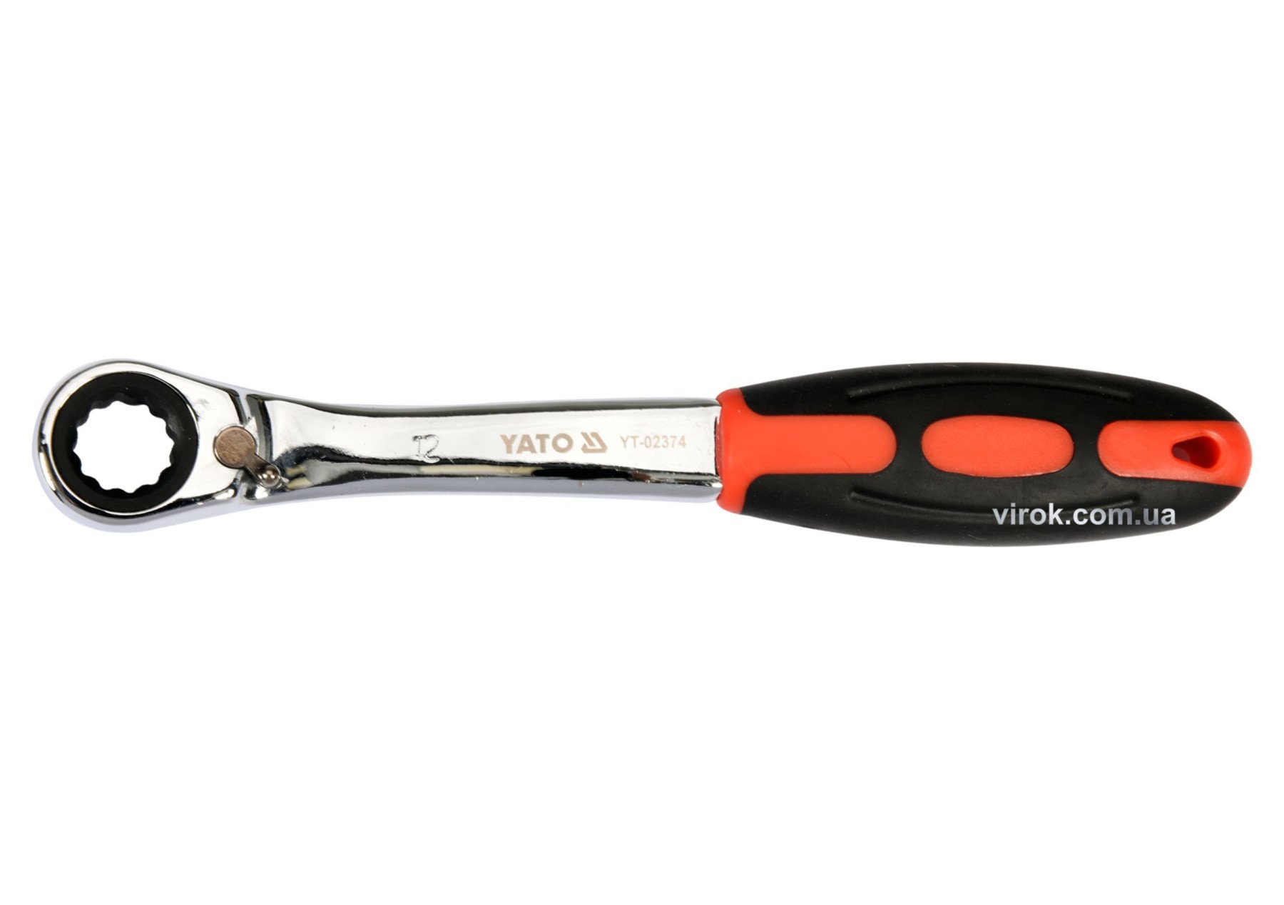 YATO Ключ накидний, вигнутий з тріщаткою: М12, HRC 42-48, Cr-V, з прогумованою ергономічною ручкою