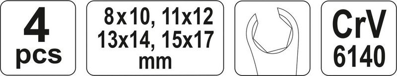 - 4 ключа: 8х10, 11х12, 13х14, 15х17 мм
