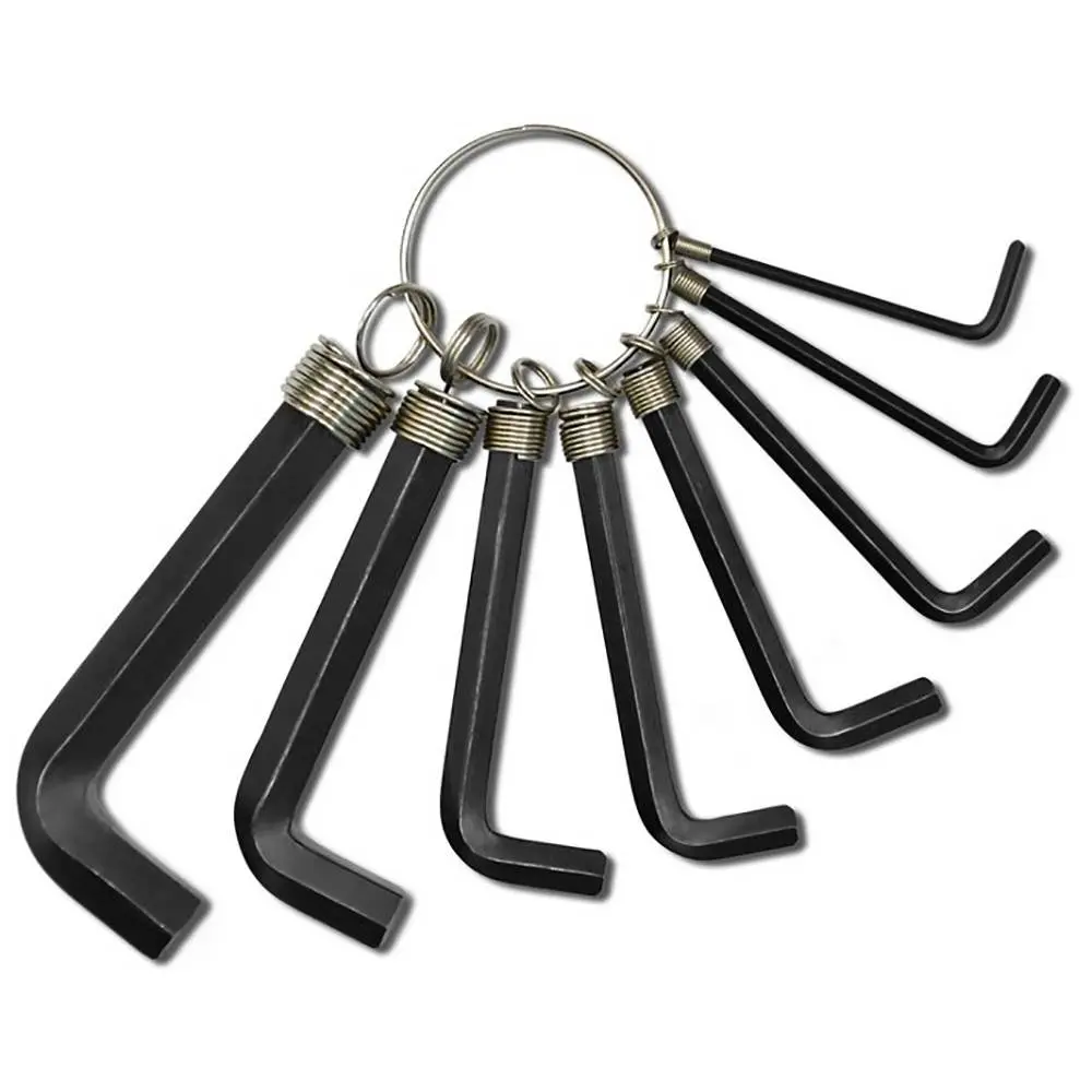 Набор ключей имбусовых из прочной углеродистой стали С45, (твердость 48-52 HRC). Ключи закреплены на кольце для удобного хранения. Применяются в машиностроении, приборостроении, а также при работе с винтами с внутренним шестигранным гнездом.