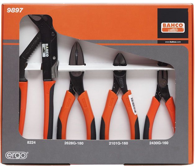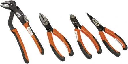 - Набор инструментов: Переставные клещи, бокорезы, универсальные плоскогубцы и плоскогубцы с удлиненными губками