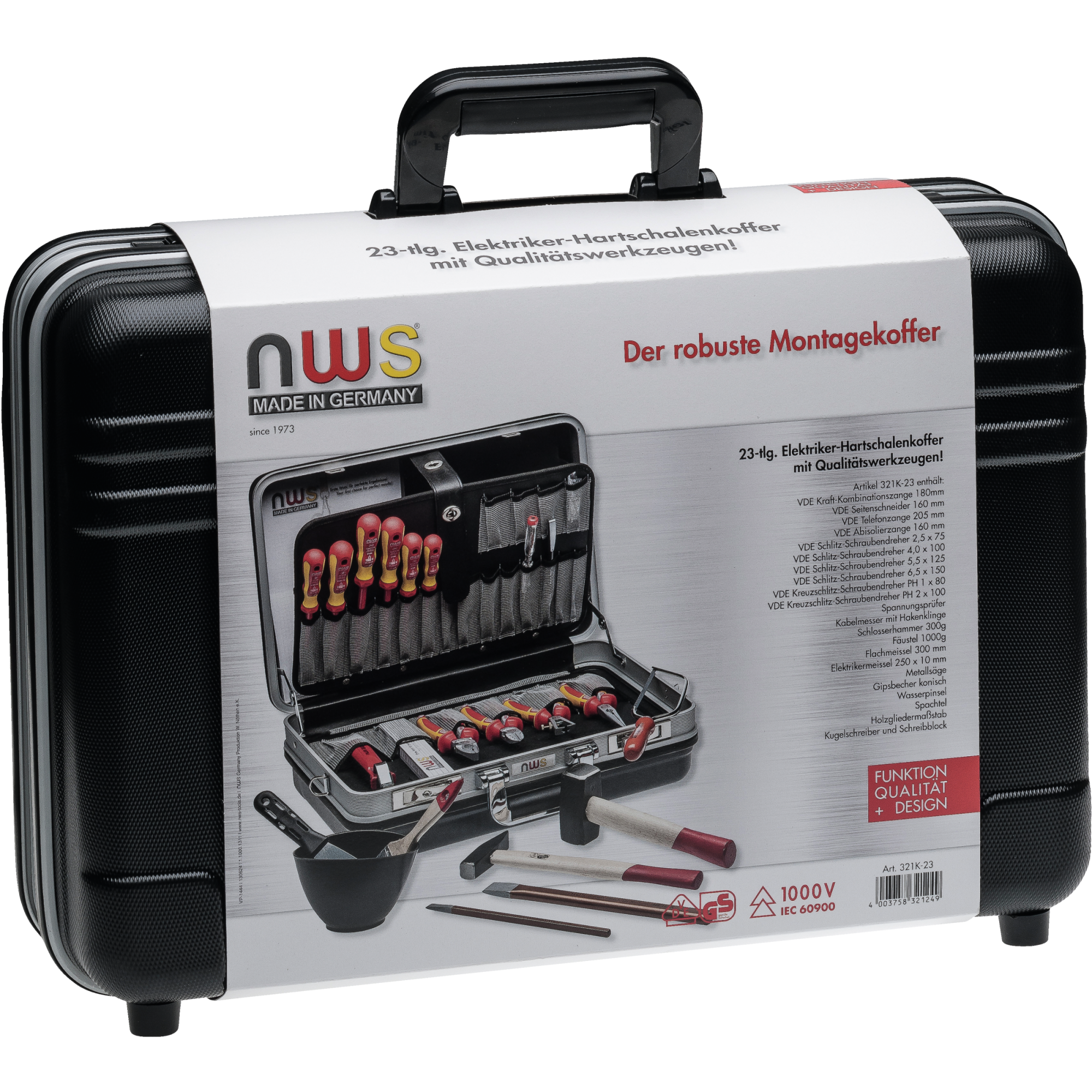 - Комплектуется высококачественными инструментами, частично изолированными и проверенными по DIN EN/IEC 60900