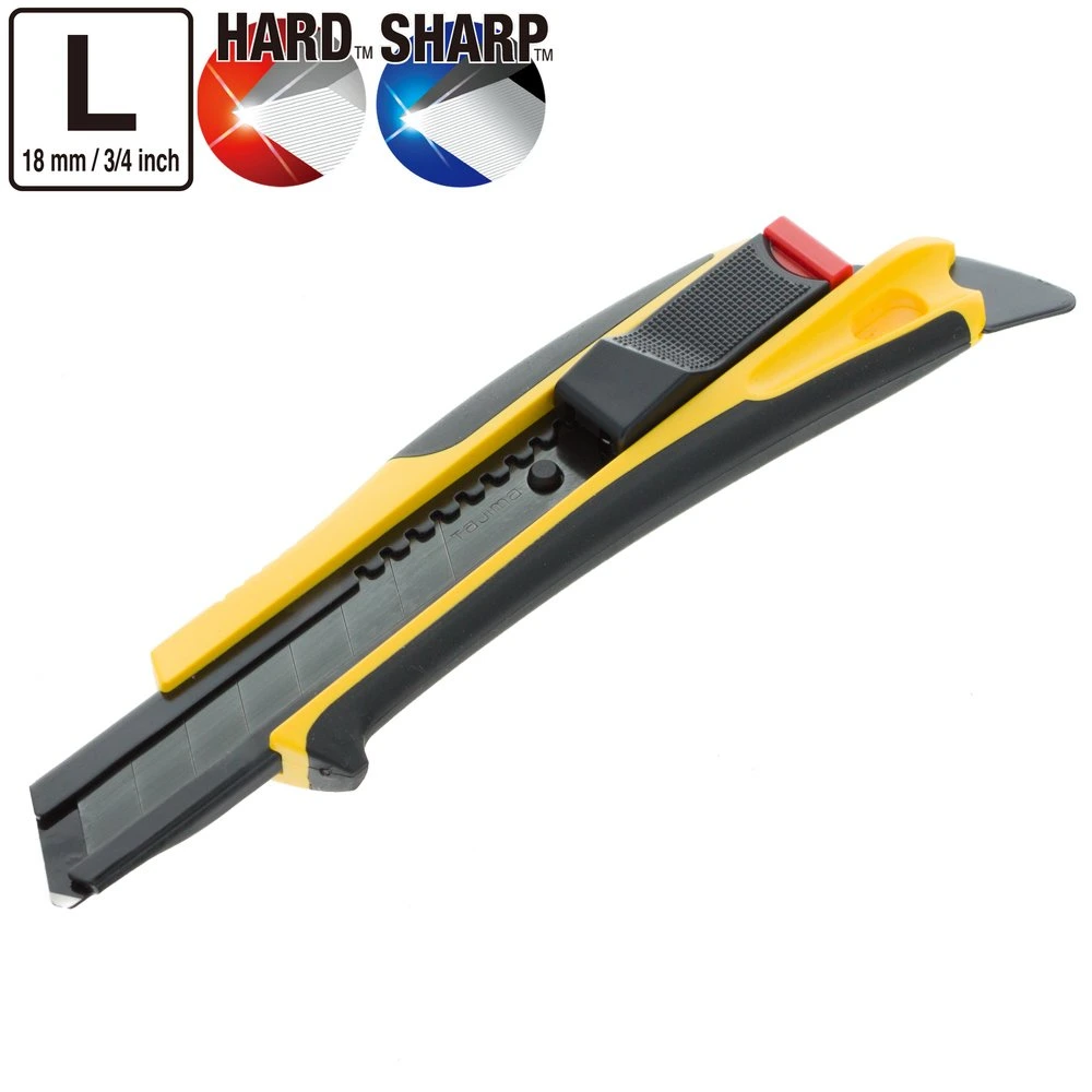 - японская технология закалки и термической обработки направляющей шахты.Универсальный безопасный нож изготовлен для экстремальных условий на строительной площадке. TAJIMA - единственный производитель, который изготовляет металлическую основу для ножей из высококачественной инструментальной стали. Основа ножа подвергается многократной закалке в масляной ванне, благодаря этому она устойчива к стиранию и износу при эксплуатации, устойчива к падениям и механическим нагрузкам, которые возникают при использовании на строительной площадке. Фирменный дизайн и двухкомпонентная рукоятка обеспечивают комфортное пользование ножом и предохраняют ладони от потертостей. Специальный закаленный носик превращает нож в незаменимого помощника, который, кроме основного назначения, можно использовать как отвертку или резец.- Безопасный нож с системой автостопора и автовозврата лезвия.