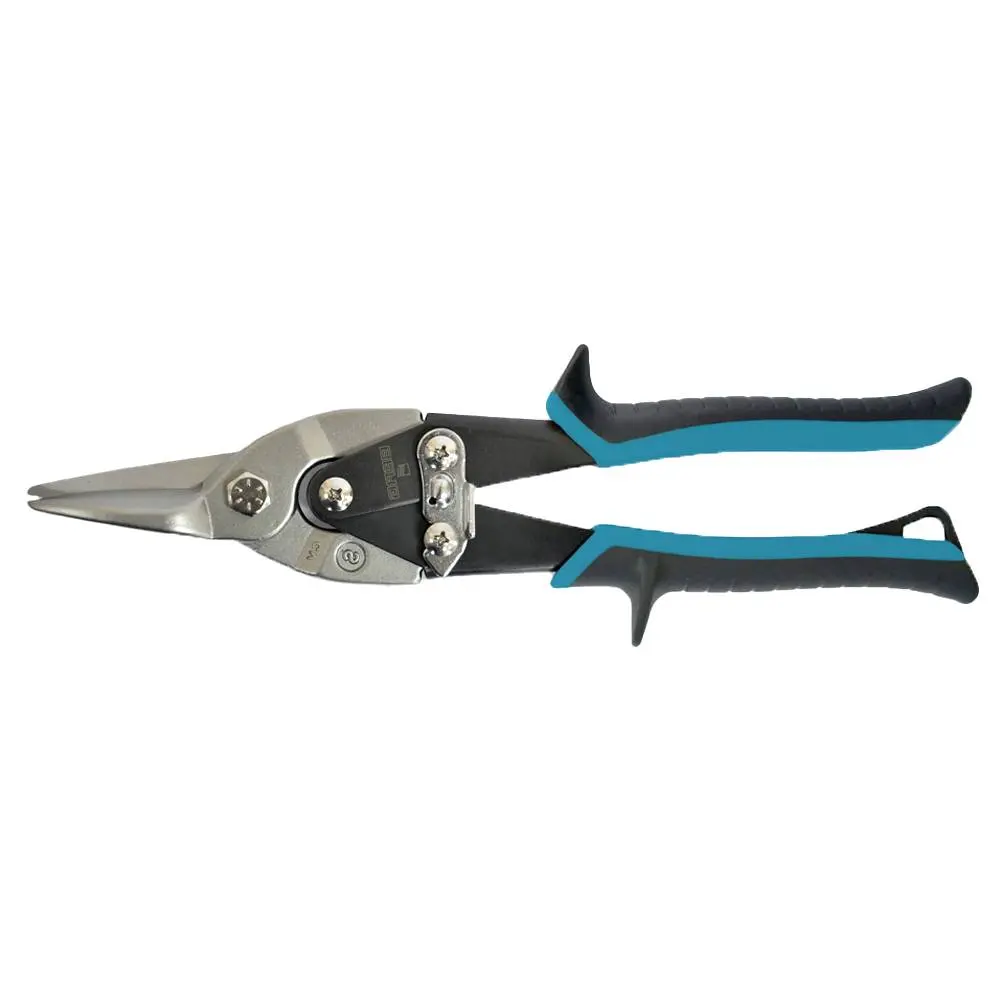 Ножиці по металу виготовлені високоякісної зі сталі, легованої хромом і молібденом. Тип обробки - ковка. Робочі поверхні ретельно відполіровані та мають захисне антикорозійне покриття. Ріжучі поверхні проходять індукційне зміцнення до 60-62HRC, що забезпечує кращу міцність і довговічність. Ножиці довжиною 250 мм та є трьох видів : 45-050 з лівим різом, 45-051 с правим різом та 45-052 з прямим різом. Зручні ергономічні двокомпонентні (пластик + гума) ручки запобігають ковзанню інструменту у руці та забезпечує комфорт і зниження втоми руки під час роботи. Застосовуються для різання холоднокатаної сталі товщиною до 1,2 мм та нержавіючої сталі до 0,7 мм. Зручний та надійний інструмент з яскравим сучасним дизайном.